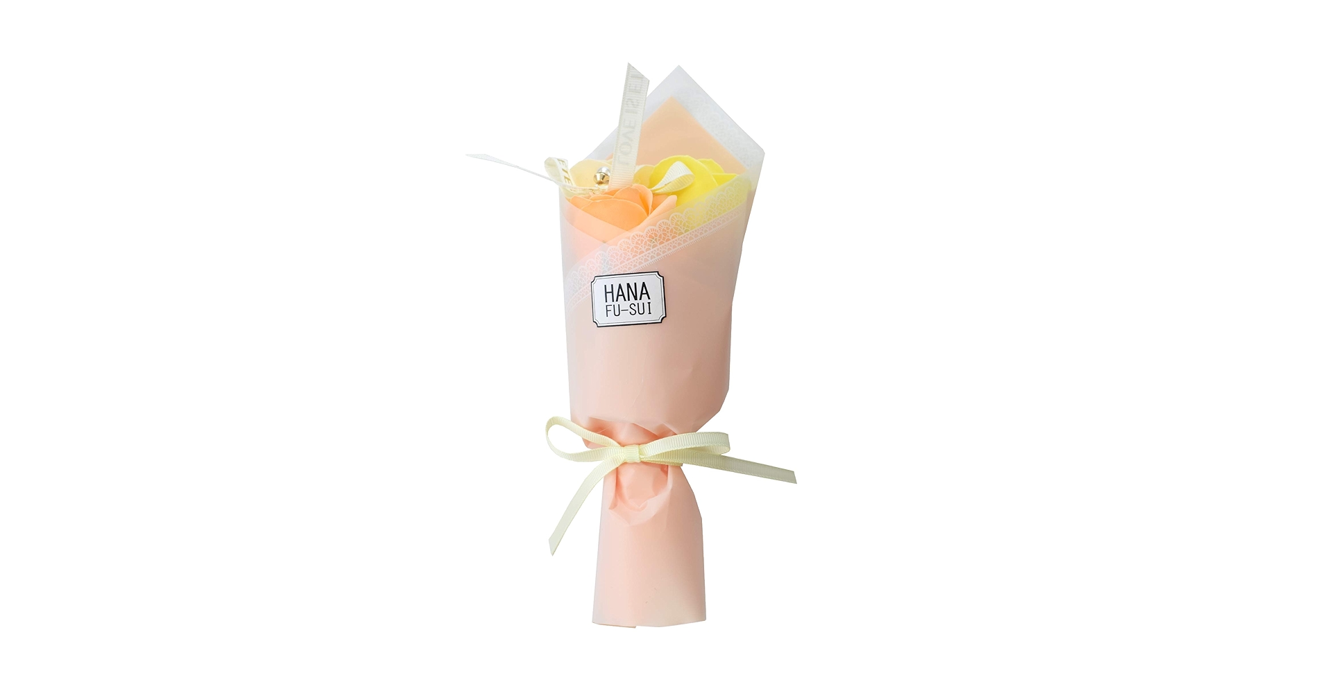 「ソープフラワーフレグランス」の特徴は生花やプリザーブドではなく、石鹸素材を材料として出来ており一つの花びらをとても薄く加工し、その花びらを一枚一枚組み合わせ作った花束です。 ※こちらはお風呂などで使えないです。
