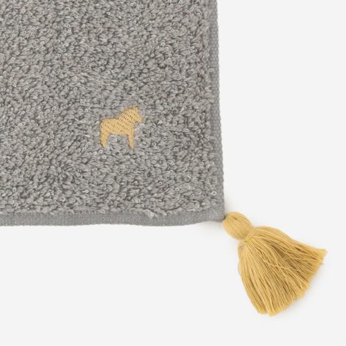 タオルにダーラヘストの刺繍がアクセント。タオルには洗っても大丈夫な馬の尻尾をイメージしたタッセル付きです。