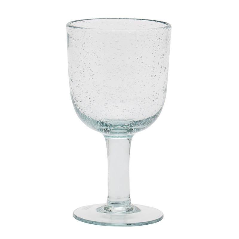 アフリカのエスワティニで作られたワイングラスは、熟練した職人によって手吹きされ、直線的なステムが特徴のワイングラスはエレガントかつモダンな印象を与えます。