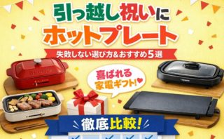 引っ越し祝い引っ越し祝いにホットプレートは失敗しない?おすすめ5選と選び方 引っ越し祝いにホットプレートは実用的で喜ばれる家電ギフト。相場・選び方・おすすめモデルを比較表付きで解説。新築祝いにも対応。 2020.01.19引っ越し祝い