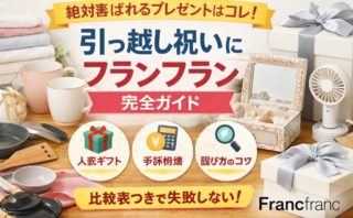 引っ越し祝い引っ越し祝いにフランフランが人気!失敗しないギフト完全ガイド 引っ越し祝いにフランフラン(Francfranc)は本当に喜ばれる?人気ギフト・価格相場・選び方を比較表付きで徹底解説。友人・同僚・家族向けおすすめも紹介! 2020.03.27引っ越し祝い